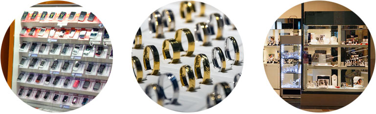 Retail store security system helps to prevent stealing luxury goods like mobile phones, expensive alcohol, or jewelry out of show windows. Small and elegant wireless sensors with long battery life are easy to install. Any sensor movement or protected object movement will cause alarm at the staff work desk. For easy daily usage, there is a remote management keychain that allows arm/disarm sensors quietly. The sensors protected from any third-party magnetic or lightning impact.
